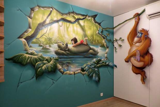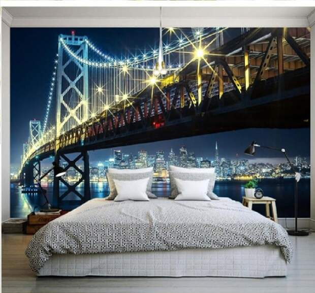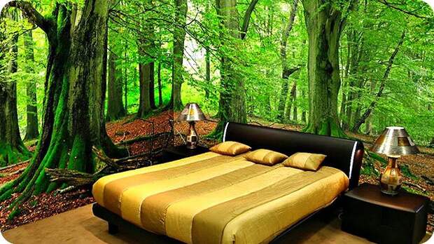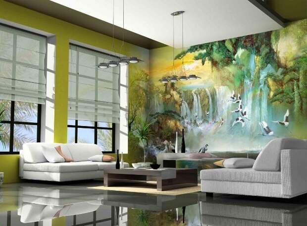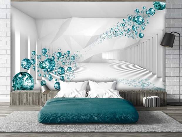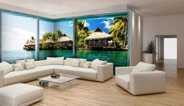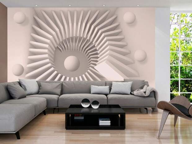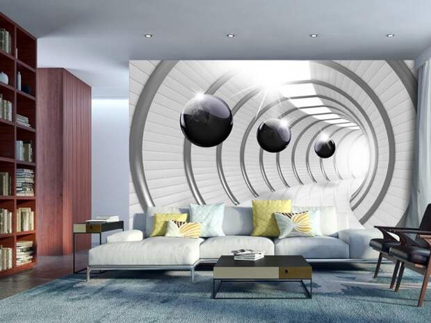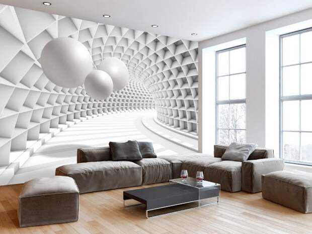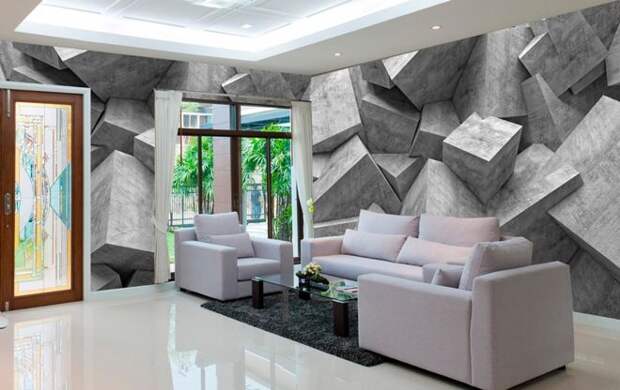 Дизайн интерьера комнаты со стереоскопическими обоями