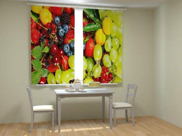 В интерьерном оформлении стен кухни смело используют яркие рисунки фруктов, овощей, различные натюрморты. Также уместными считаются пейзажи. Например, помещение в стиле прованс украсит стена с изображением фрагмента старинной улочки Парижа, а модерн дополнит стереоэффект современного мегаполиса.