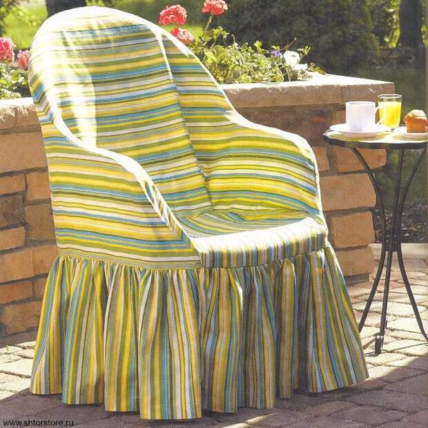 Деревянную, пластиковую или кованую мебель сдержанных расцветок стильно украсят оригинальные чехлы. Специальные накидки помогут в считанные минуты преобразить мебель и придадут интерьеру комнаты новое настроение.