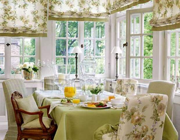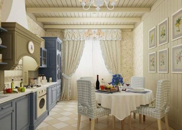 Романтичный стиль всегда остается популярным. Многим приходятся по душе мягкие естественные оттенки (бледно-розовый, размыто-лавандовый, голубой, салатовый). Характерные черты этого интерьерного направления: текстиль с мелким цветочным орнаментом, декорирование мебели вязаными, сшитыми изделиями (скатерти, чехлы). Дизайнерские текстильные вещи в стиле прованс (скатерти, занавески, салфетки) украшают рюшами и кружевами.