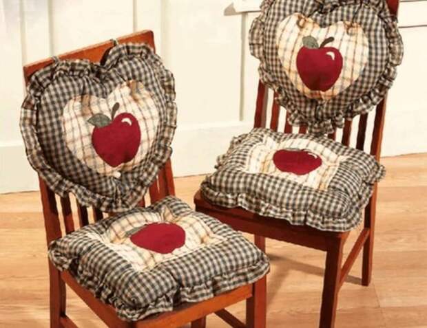 Очень просто сделать накидки на стулья своими руками. Если сиденья жесткие, то чехлы можно дополнить кусками поролона или синтепоном.