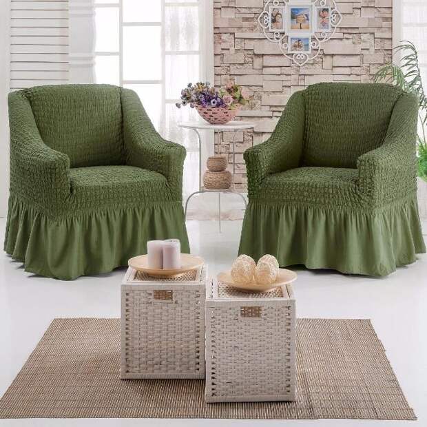 Отдельного внимания заслуживают еврочехлы, которые настолько плотно облегают мебель, что напоминают обивку. Фиксируются накидки с помощью резинок.