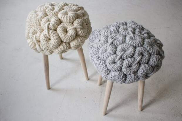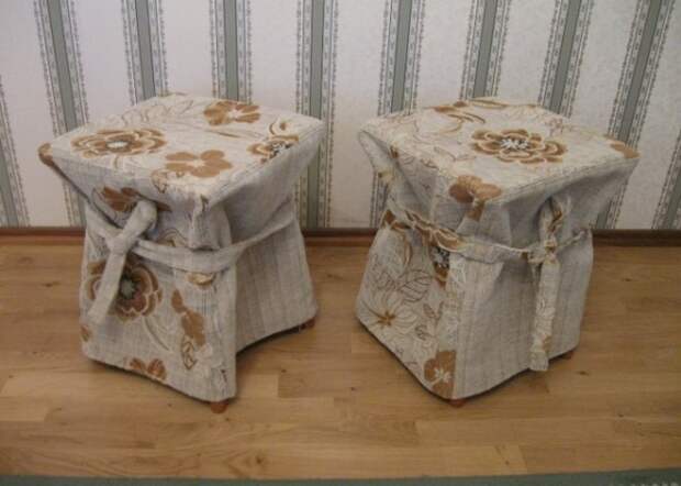 Накидки на табуретки или пуфики являются нестандартным бюджетным вариантом декора и обеспечивают жильцов комфортом. Чаще всего встречаются изделия двух видов: