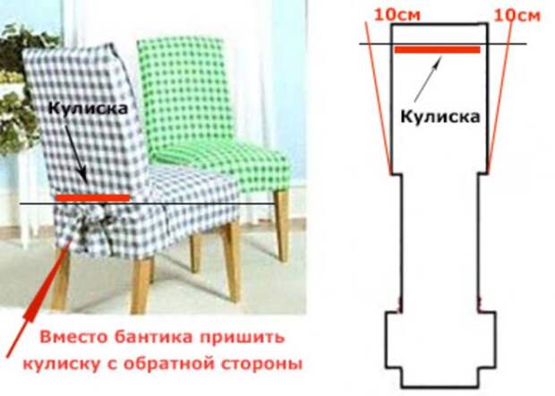- Снять точные мерки со стула. Здесь надо определиться с размером/длиной «юбки» чехла. Делая выкройку деталей, следует оставлять на припуски для швов примерно до 1 см (зависит от типа ткани).
