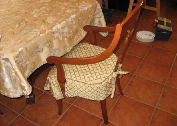 Эти элементы весьма условно можно отнести к декоративным деталям, поскольку практически всегда их используют для фиксации чехла (сидушки, накидки). Можно проявить креатив и пришить завязки из бархатных или атласных лент. При этом изделие не станет слишком нарядным, но приобретет нотки изыска и элегантности.