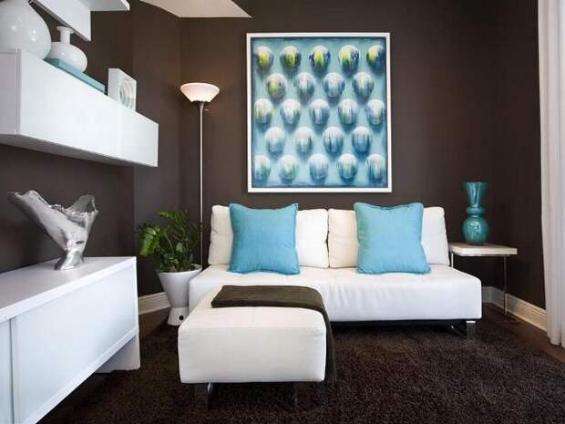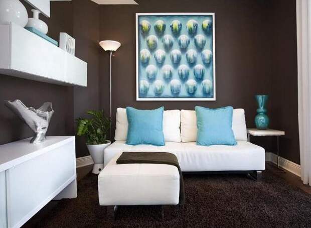 Контрастное сочетание нескольких оттенков одного цвета используют не только для одной комнаты, а для оформления пространства всей квартиры. В итоге помещение становится просторнее, приобретает законченный вид и собственный характер.