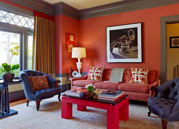 Создавая интерьер, подбирают контрастные, дополняющие или акцентные оттенки палитры.