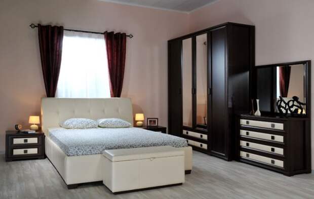 - если кровать стоит недалеко от окна, то его занавешивают плотными шторами, чтобы лунный или солнечный свет не тревожил спящих;
