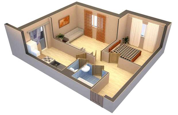 Выбор планировки многофункциональных комнат, выполняющих роль спальни и гостиной, в основном определяется площадью помещения.
