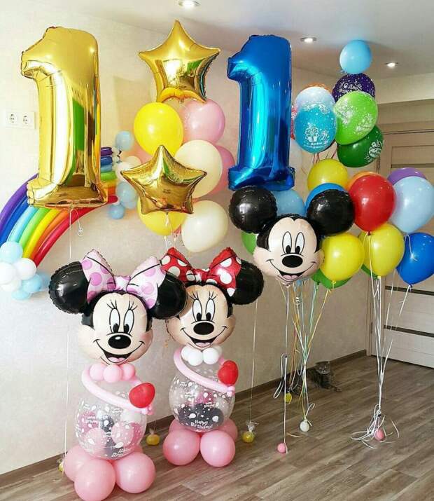 Перед тем как украсить комнату на день рождения ребенка, стоит обратить внимание на героев мульфильмов Дисней, например, на Микки Мауса. Черный, розовый и белый – это основные цвета, которые используются при декоре. Девочке понравятся надувные шарики, а также фигура самого Микки или Минни Маус. Подбирать гирлянды, бантики и помпоны для декора комнаты стоит, придерживаясь основной цветовой гаммы.