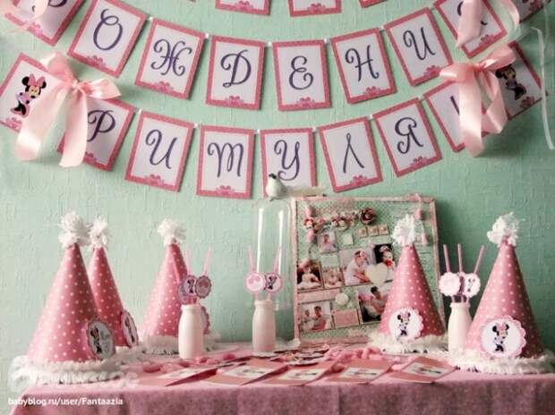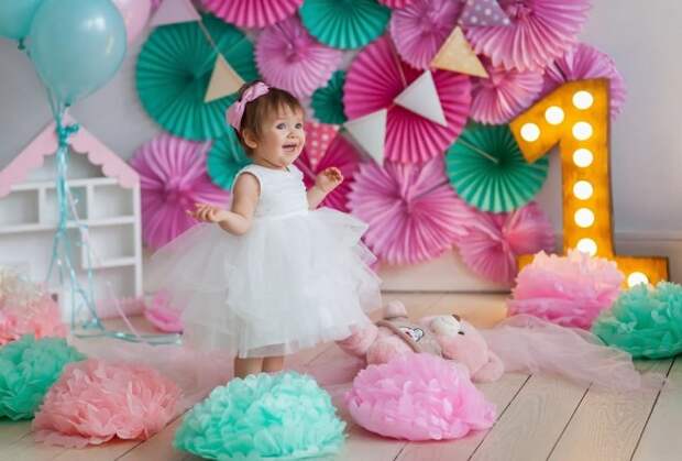 Чаще всего для дня рождения девочки на 1 годик подбирается розовый цвет, а для мальчика – голубой.