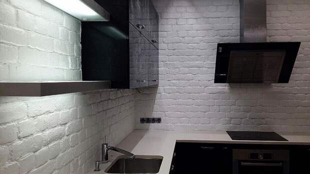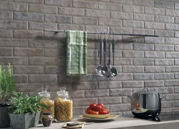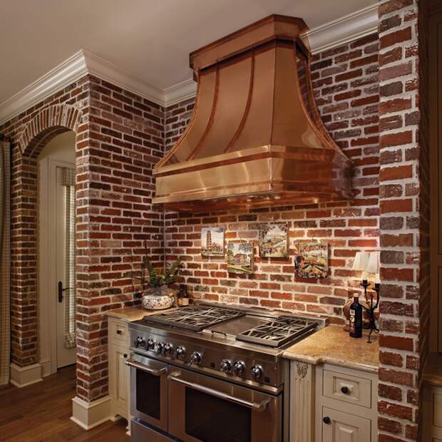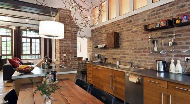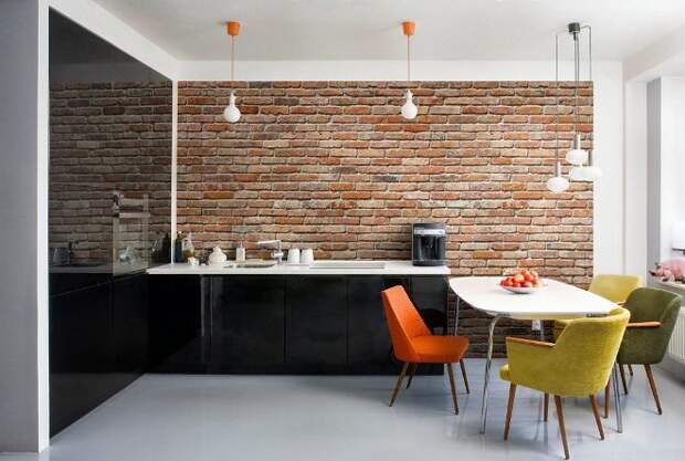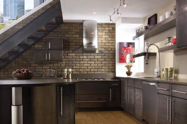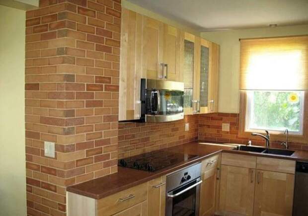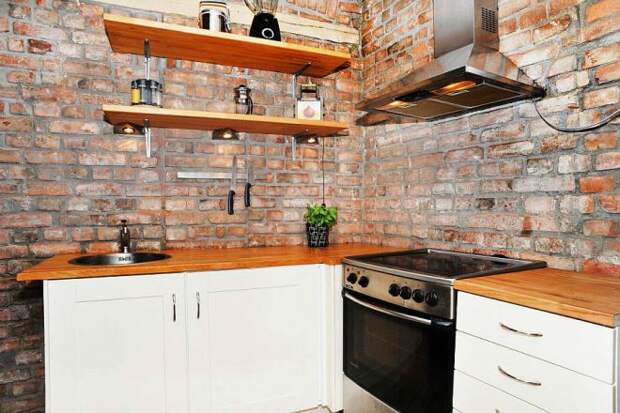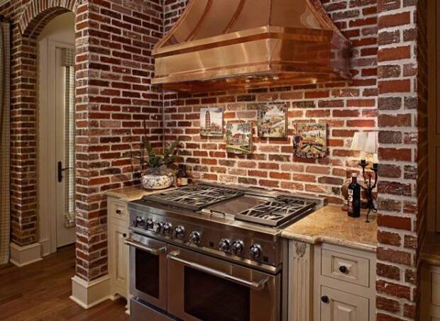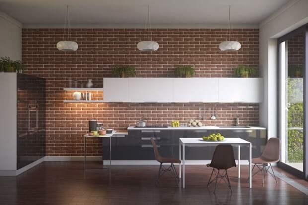 Стена из кирпича на кухне