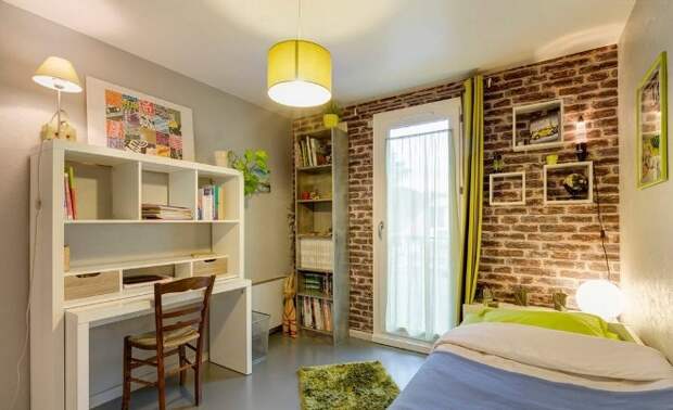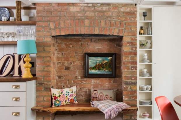Не обязательно покрывать кирпичом все стены в комнате, чтобы это хорошо смотрелось. Иногда достаточно яркого маленького акцента.