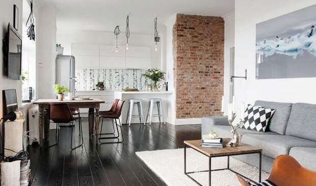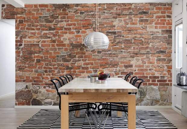 Стена из кирпича в интерьере комнат
