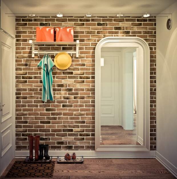 Стена из кирпича в прихожей