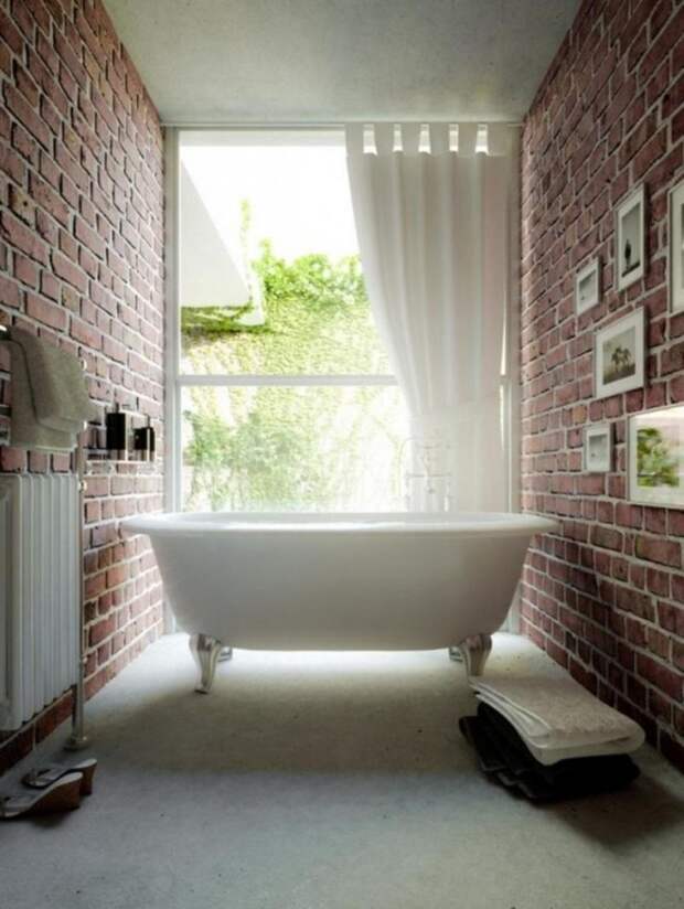 Стена из кирпича в ванной