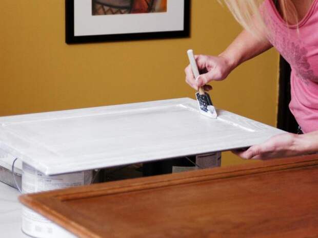 Для перекрашивания кухонных дверей подойдет далеко не каждая краска. Здесь выбирают из: