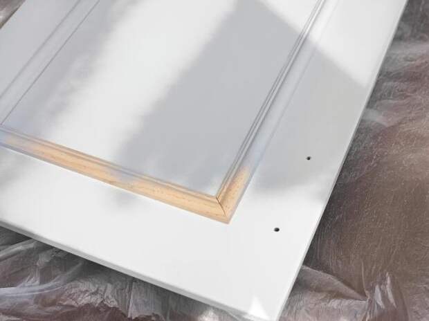 В случае, когда необходимо покрасить фасад гарнитура, нужно зафиксировать чистую поверхность скотчем. Это же делают в целях защиты от замазывания. Затем выполняется окрашивание: