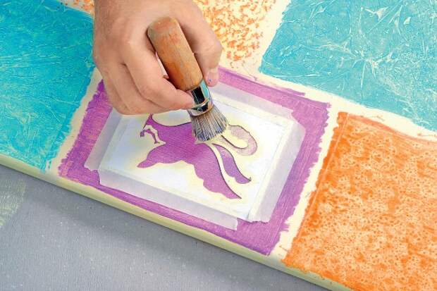 - для создания узоров прибегают к трафаретам. Их делают собственноручно, покупают готовые. Иной раз достаточно простого малярного скотча;