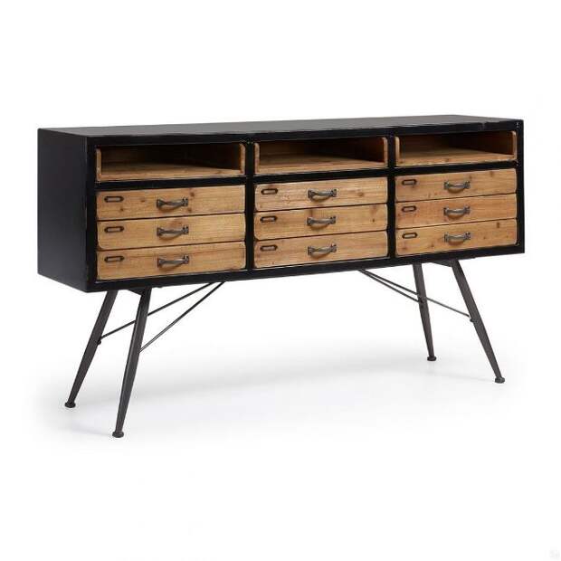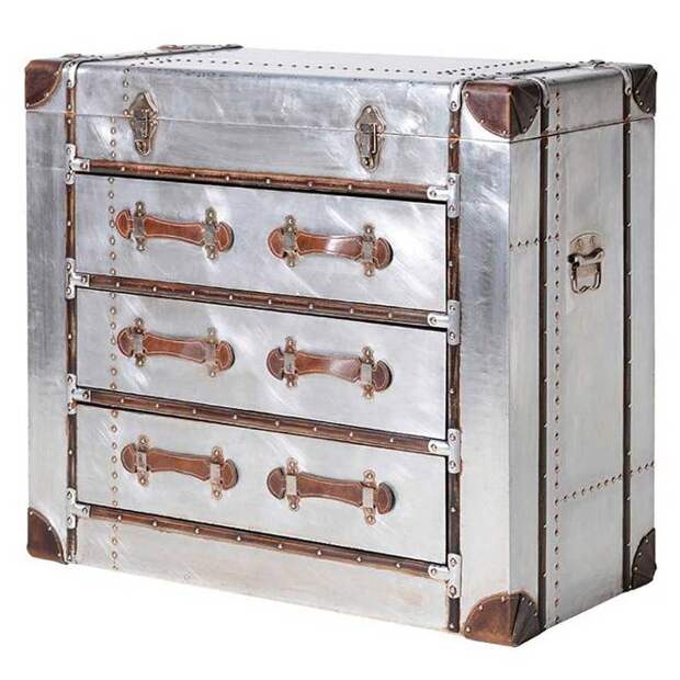 Красиво дополнить интерьер гостиной позволят деревянные комоды, которые изготовлены из металлических профилей или с бронзовым оформлением. Сочетание дерева и металлических элементов или ковки позволит привнести в интерьер изюминку. Изделие с металлическими элементами отлично впишется в стиль хай-тек и минимализм.