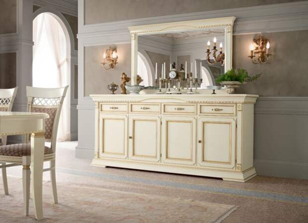 Красивым вариантом для гостиной станет комод с зеркалом. В большей мере изделие выполняет эстетическую, нежели функциональную роль. Благодаря наличию зеркала удастся визуально увеличить помещение. Изделие подходит для хранения посуды, скатерти и столовых приборов. Элегантно выглядят модели с зеркалом, выполненные в белом цвете или в форме камина. Верхняя столешница при желании украшается цветами или статуэтками.