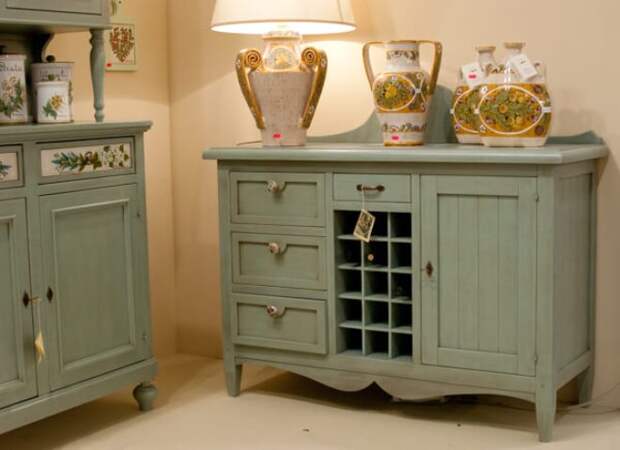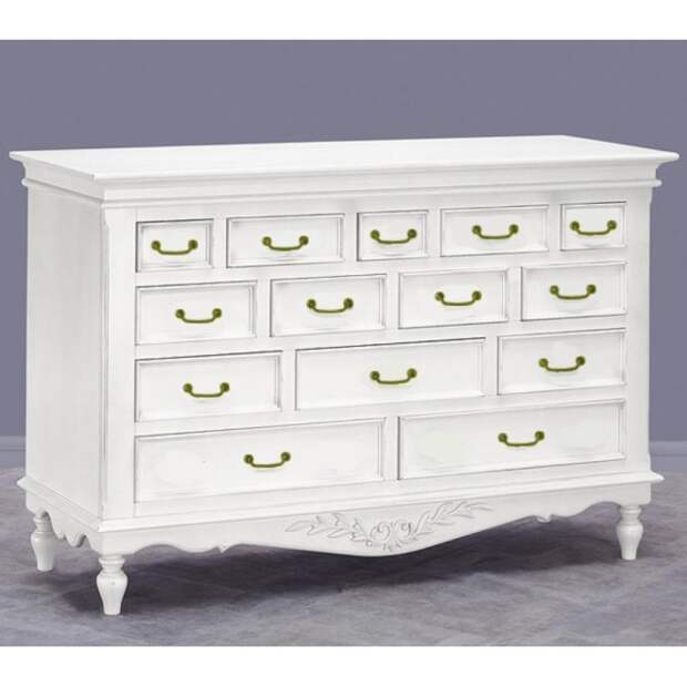 Предпочтение следует отдавать комодам на изящных ножках, без острых углов. В стиль прованс идеально впишутся изящные модели насыщенных расцветок. Дополняет фасад ручная роспись, изогнутые элементы декора и декупаж.