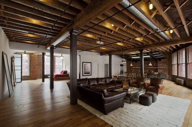 - бетонные конструкции. Применяются для поддержания потолочных плит, одновременно служат декором в помещении. В интерьере их совсем не обязательно подвергать художественной отделке (что идеально подойдет для воплощения стиля лофт). Однако такие элементы имеют большой вес, поэтому не рекомендуется использовать их в квартирах;