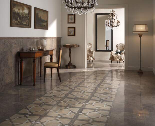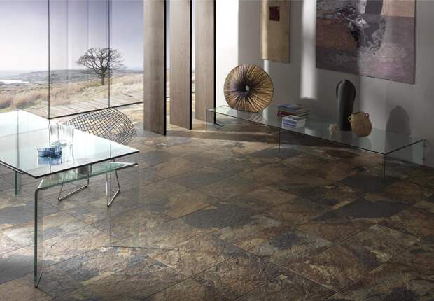 Если говорить о внутренней отделке, то керамогранит удобен для пола в квартирах: это толстые, большого размера плиты. Прослужит он при правильной укладке более 50 лет.
