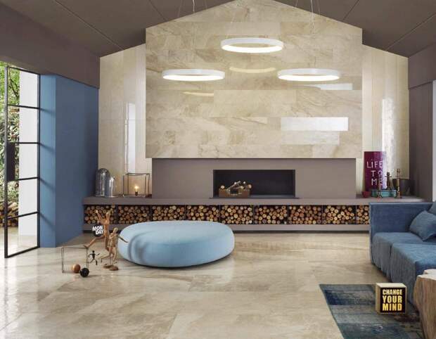Внутри помещения этим материалом обычно покрывают всю стену или её часть, дверные проёмы, ниши, камины. Поверхность бывает гладкой или шероховатой, глянцевой или матовой.
