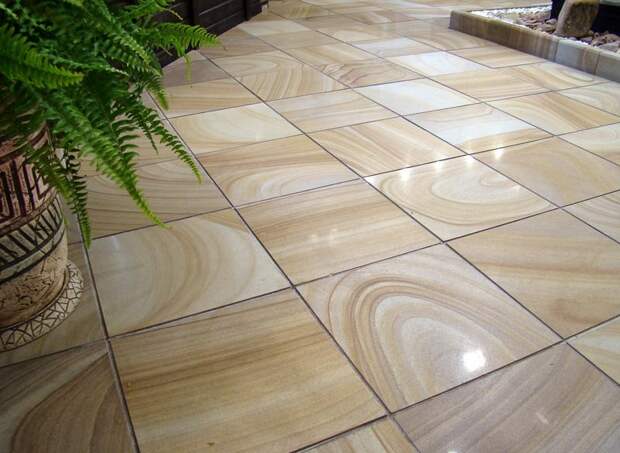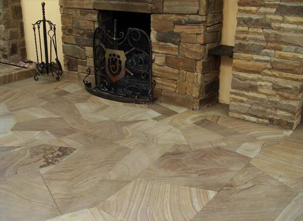 Натуральный камень шершавый, легко расслаивается. Последнего недостатка нет у искусственного материала. Есть неровные поверхности или слегка структурированные. Чаще всего изготавливают из керамогранита.