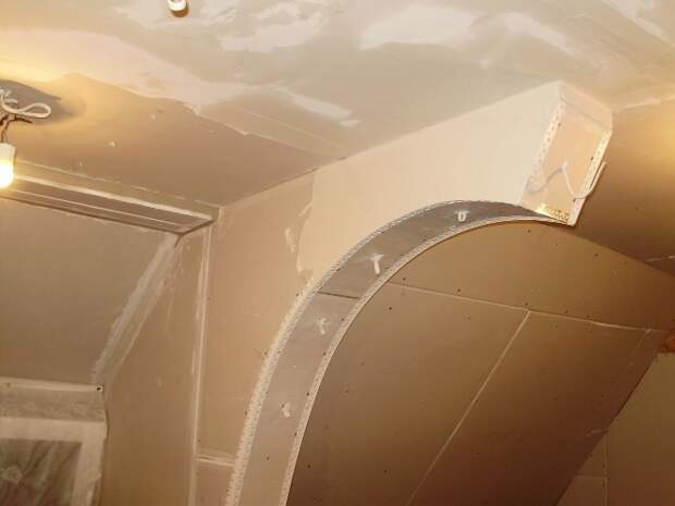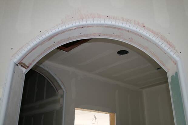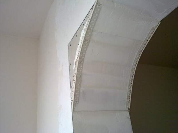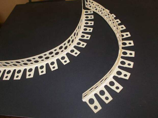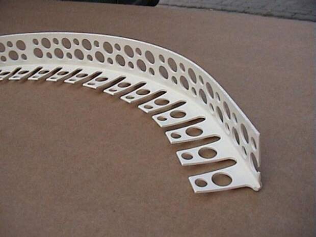 На криволинейных поверхностях при изгибе перфорированного углового металлического профиля появляются бугры, и круглая арка становится многоугольной. Поэтому при укреплении проемов используют пластмассовый перфорированный угловой профиль.