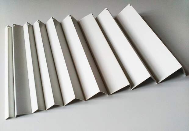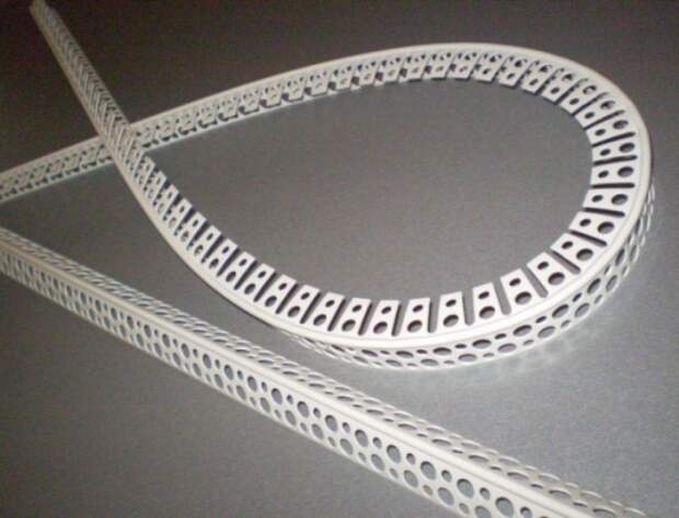 Из пластмассы делают перфорированные уголки для отделки углов и откосов. Они гибкие и недорогие. Изделия изготавливают из ПВХ или полиуретана. Они отлично держат форму при изгибах. Уголки настолько мягкие, что ими можно отделывать криволинейные поверхности с минимальным радиусом. Также изделия из пластика ПВХ и полиуретана имеют большую прочность и не выцветают.