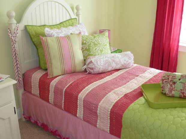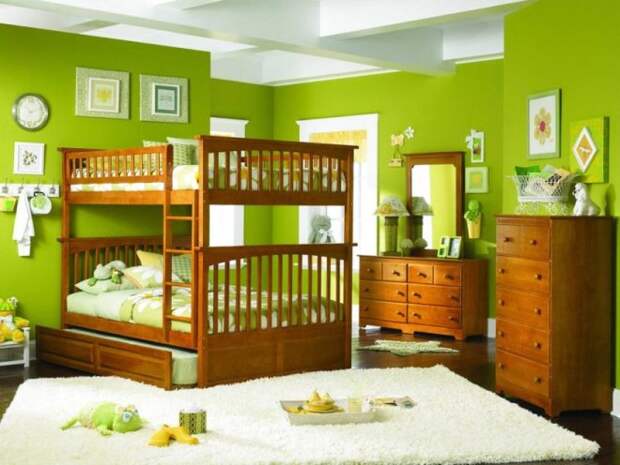 Для детской комнаты недопустима кислотная, кричащая и яркая зелень. Идеальным для детского зрения станут желто-зеленый или светлый цвет. Такие элементы смогут пробуждать активность и способность к умственной деятельности. В подростковой комнате могут перекликаться более агрессивные и темные оттенки: бирюзовый, салатный, болотный. Это дает возможность самовыражения и создания своего отдельного микромира. Главное – использовать зеленые оттенки в малогабаритной комнате в небольших количествах, дополняя их правильным освещением.