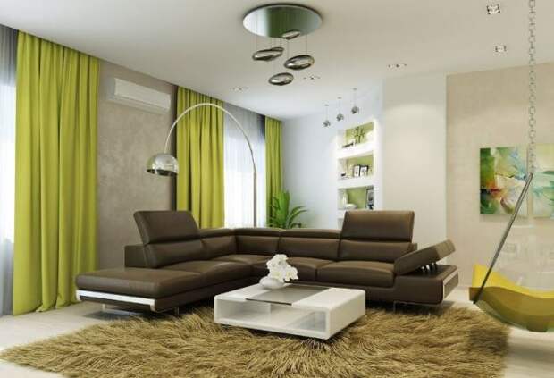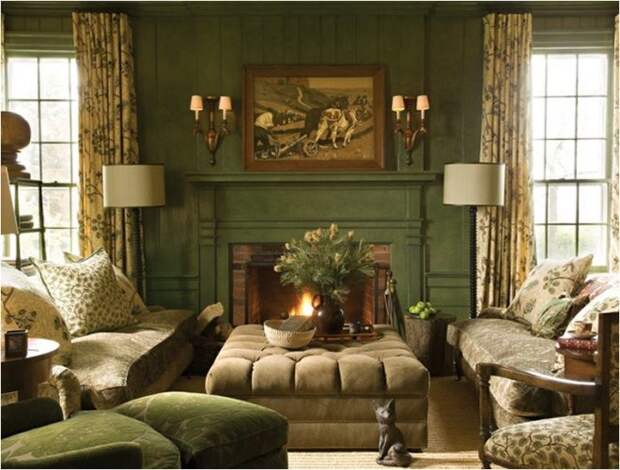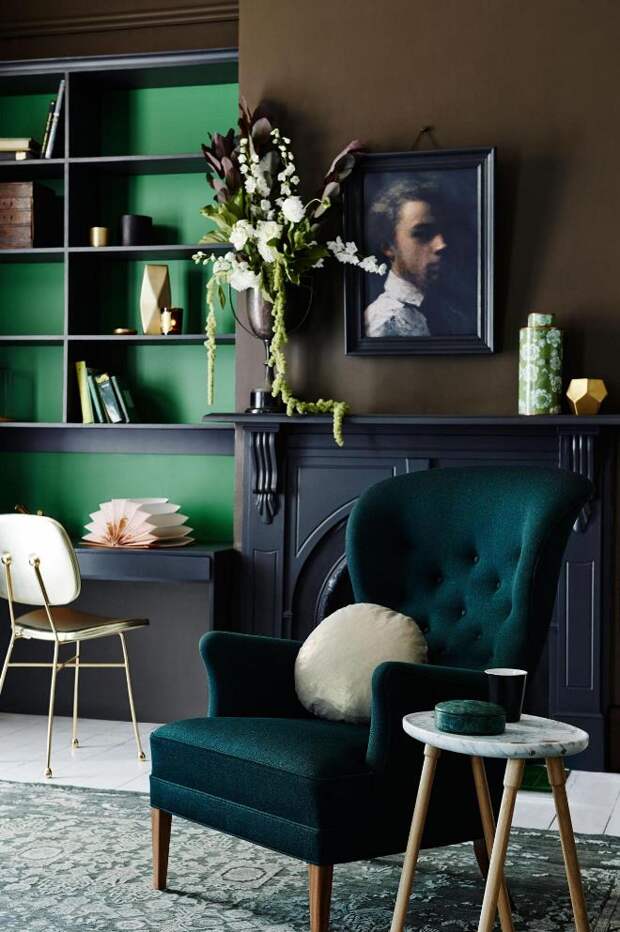 Коричнево-зеленый цвет в интерьере