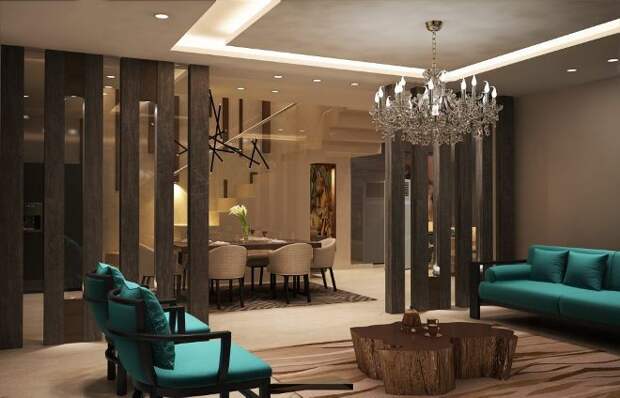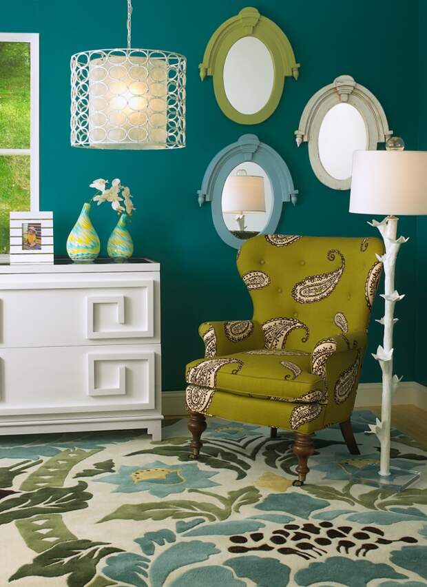Сине-зелёный цвет в интерьере