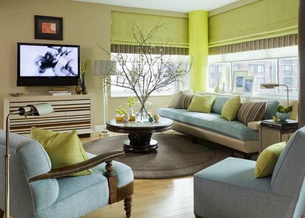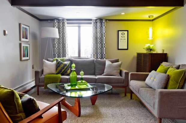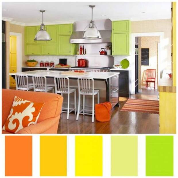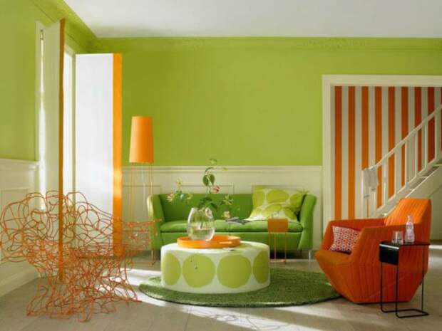 Сочетание желто-зеленого и оранжево-зелёного в интерьере