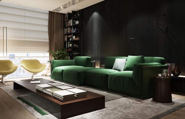 Черно-зеленый цвет в интерьере