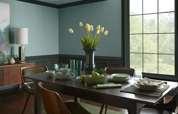 Зелёно-голубой цвет в интерьере