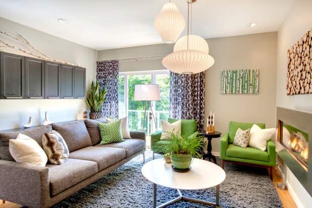 Зеленые акценты в интерьере комнат