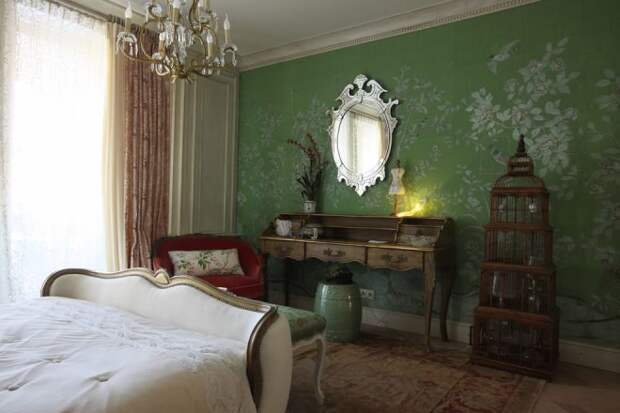 Стиль сочетает в себе глубокую философию Востока, винтаж и изысканный декор, а также огромное количество садово-паркового искусства, которое выражается в виде небольших цветов и растений по всему дизайну интерьера. Зеленые мотивы представлены в нем в виде обоев, ярких кресел, ковров и предметов декора. Предпочтительна вся зеленая палитра, которая гармонично соединяет в одной комнате сразу несколько кардинальных оттенков.