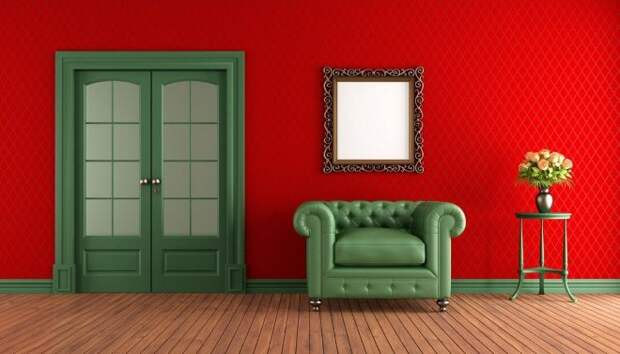 Красно-зелёный цвет в интерьере