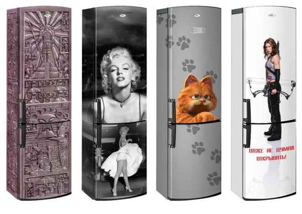 Разнообразие удивительных наклеек привлечет внимание любого покупателя. Данные изделия изготавливаются в различных ценовых категориях. Процесс поклейки довольно стандартный. Можно приобрести небольшой рисунок только для части холодильника или же купить наклейки на холодильник во всю высоту.