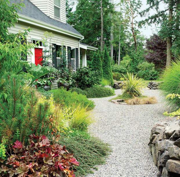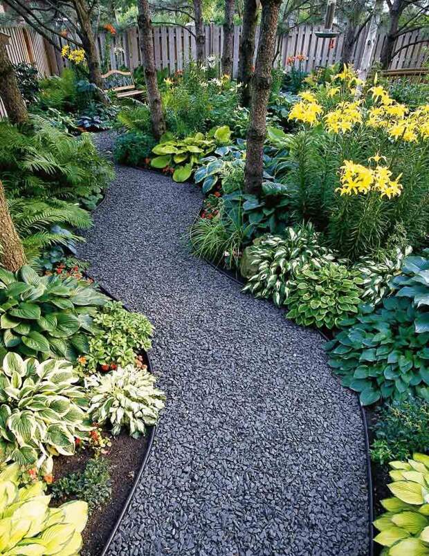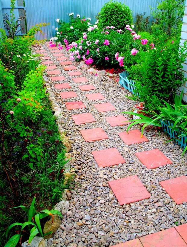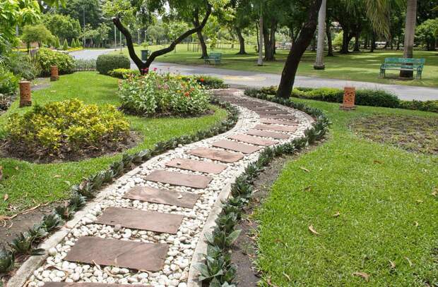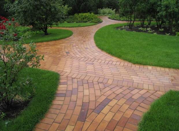 Дорожки из плитки — это не только практичный способ справиться с грязью после дождей. Это еще и украшение сада, которое превращает его в почти настоящий парк.