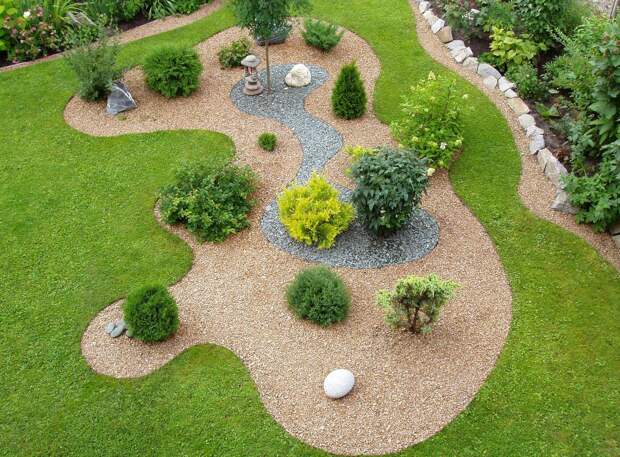 - Если нет, перечертить их заново — по дорожке к каждому важному элементу участка, так, чтобы нигде не приходилось нагибаться под деревом или перешагивать через клумбу.