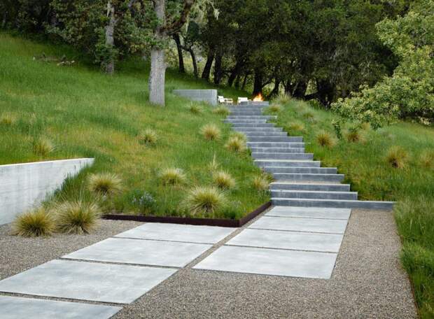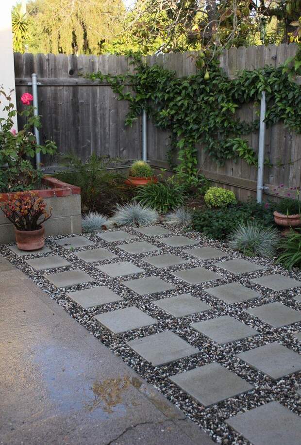- бетон используют не только в виде плитки, но и для заливки дорожек. Выглядит это скучно, а со временем еще и размывается дождями;