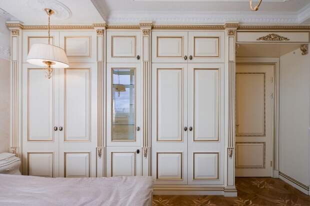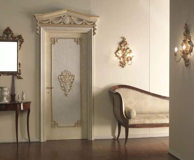 Молдинги на различных предметах интерьера отлично сочетаются между собой, создают гармонию в помещении. Довольно часто двери в дополнение к молдингам оформляют фрезеровкой, что придает им особый утонченный вид.