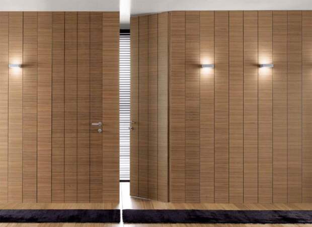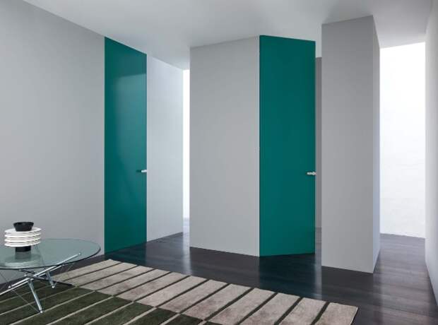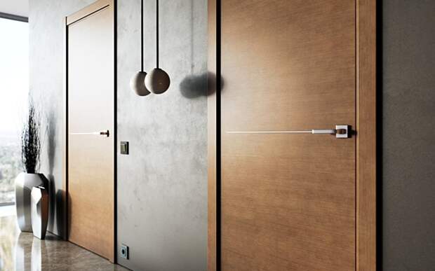 Петли в них также замаскированы, а дверная коробка не предусматривает наличников. Обозначить дверь поможет только ручка, которую тоже можно успешно «спрятать», обозначив в виде вертикального разреза полотна (особенно в случае с раздвижными дверями).