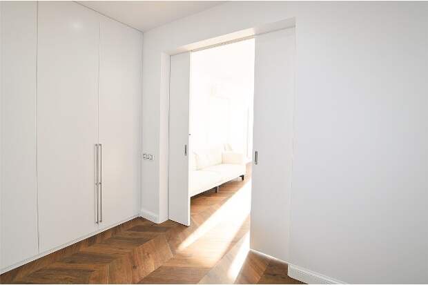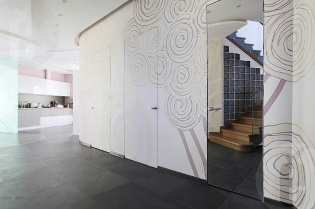 Следующим интересным дизайнерским решением являются двери-невидимки. Стоит отметить, что не всегда они лаконично смотрятся в помещении. Например, если дверей несколько, это сделает акцент на замкнутости пространства или наоборот создаст эффект проходного помещения.