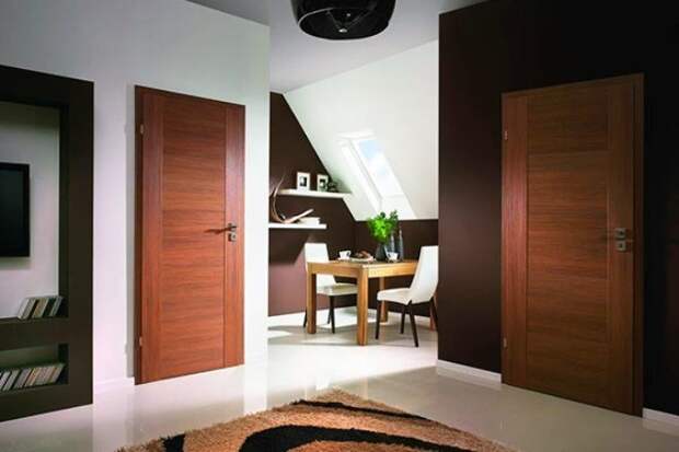 При выборе межкомнатных дверей остро встает вопрос о выборе оттенка. Он должен быть таким, чтобы изделие гармонично смотрелось на общем фоне помещения. Двери можно сочетать с чем угодно: с мебелью, с полом, с наличниками, с плинтусами, со стенами или же вообще сделать их абсолютно необычными.