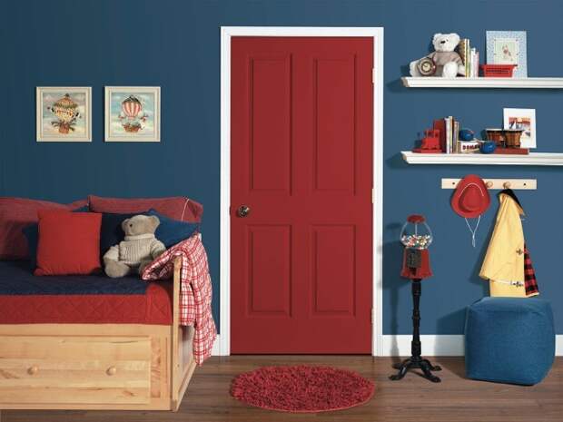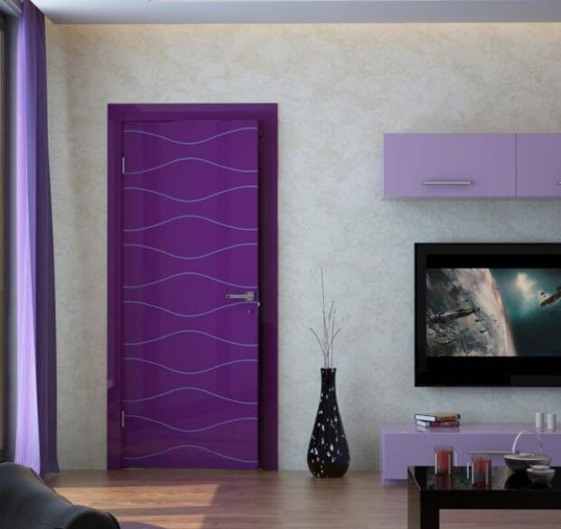 Тенденция окрашивать двери в контрастные цвета прослеживается уже давно. Именно такое изделие станет ярким акцентом комнаты. Оно способно создать интересный формат помещения и добавить ему своеобразного шарма.